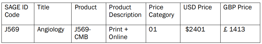 Sage’s 2025 Subscription Agents' Price List includes GBP and USD prices for all journals published by Sage (including Corwin Press).